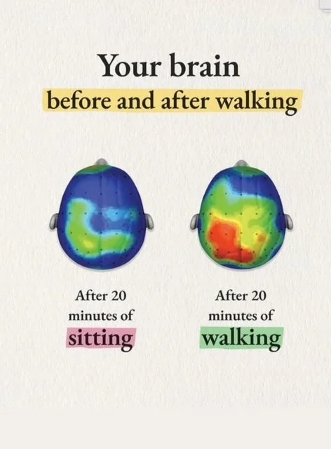 Have you seen this image? I love it. It show the difference in the brain of a person who has taken a 20 minute walk versus sitting for 20 minutes.